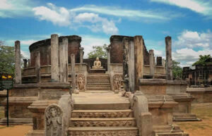 Polonnaruwa  – the Capital of Sri Lanka from 11th – 13th Century, contains some splendid and spectacular status.  Lankatilake, Tivanka and Thuparama are the most beautiful and largest shrine ruins and Tivanka has the best example of frescoes of the Polonnaruwa period.  Rankot Vihara and Kiriwehera are well preserved  large stupas, and Gal Vihare – a rock shrine, has four Buddha statues, two seated, one standing and one reclining and Parakrama Bahu statue are examples of Sinhalese stone carver. The Vata-da-ge is a unique creation of Sri Lankan artists.